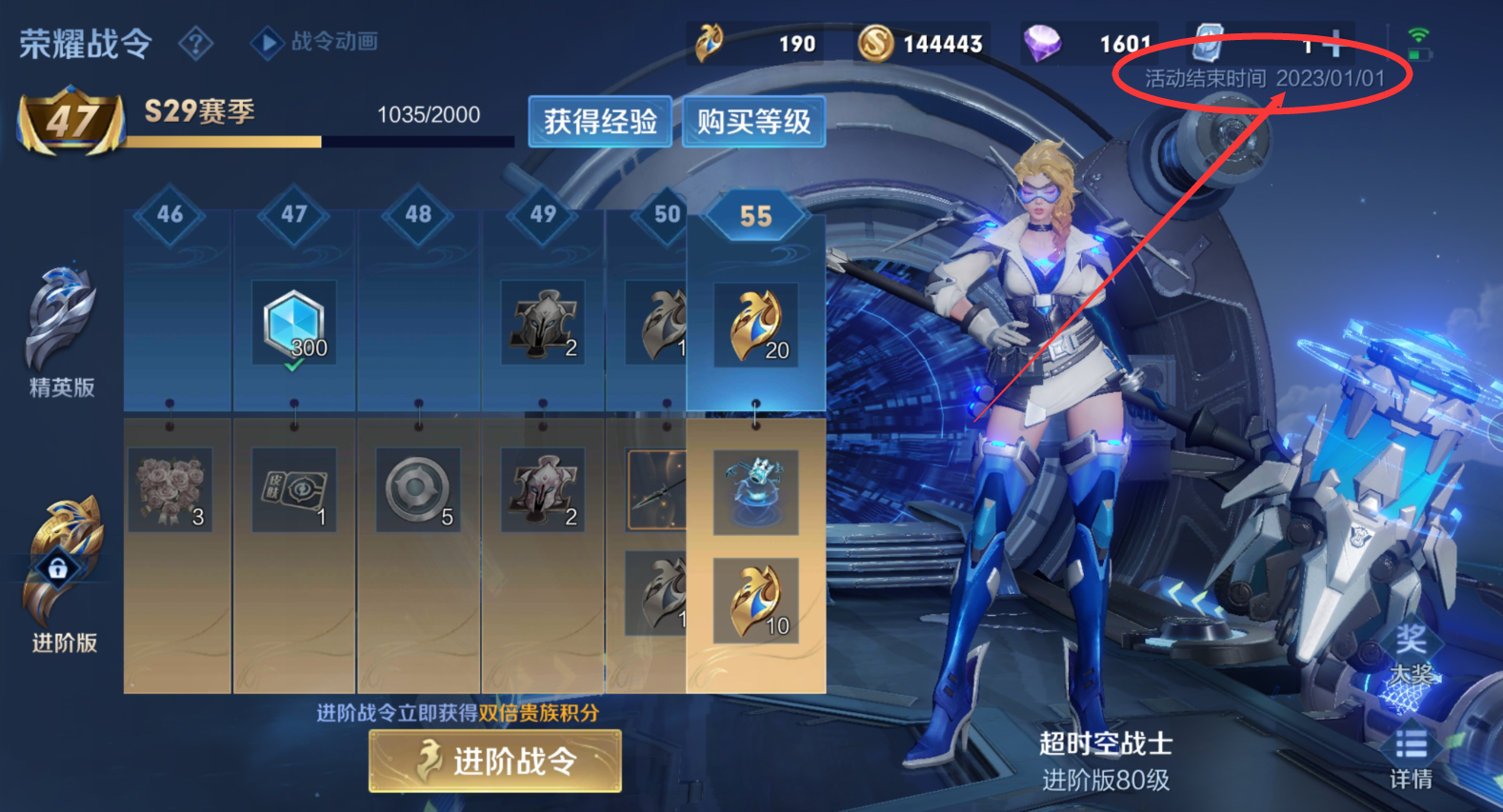 王者荣耀S29赛季已经进入尾声,正式服已在本周开启赛末冲刺活动,这个活动只有在即将结束赛季时才会上线。而游戏内的战令界面也显示:活动结束时间为2023年1月1日,这也意味着S30赛季预计将在1月5日开启。