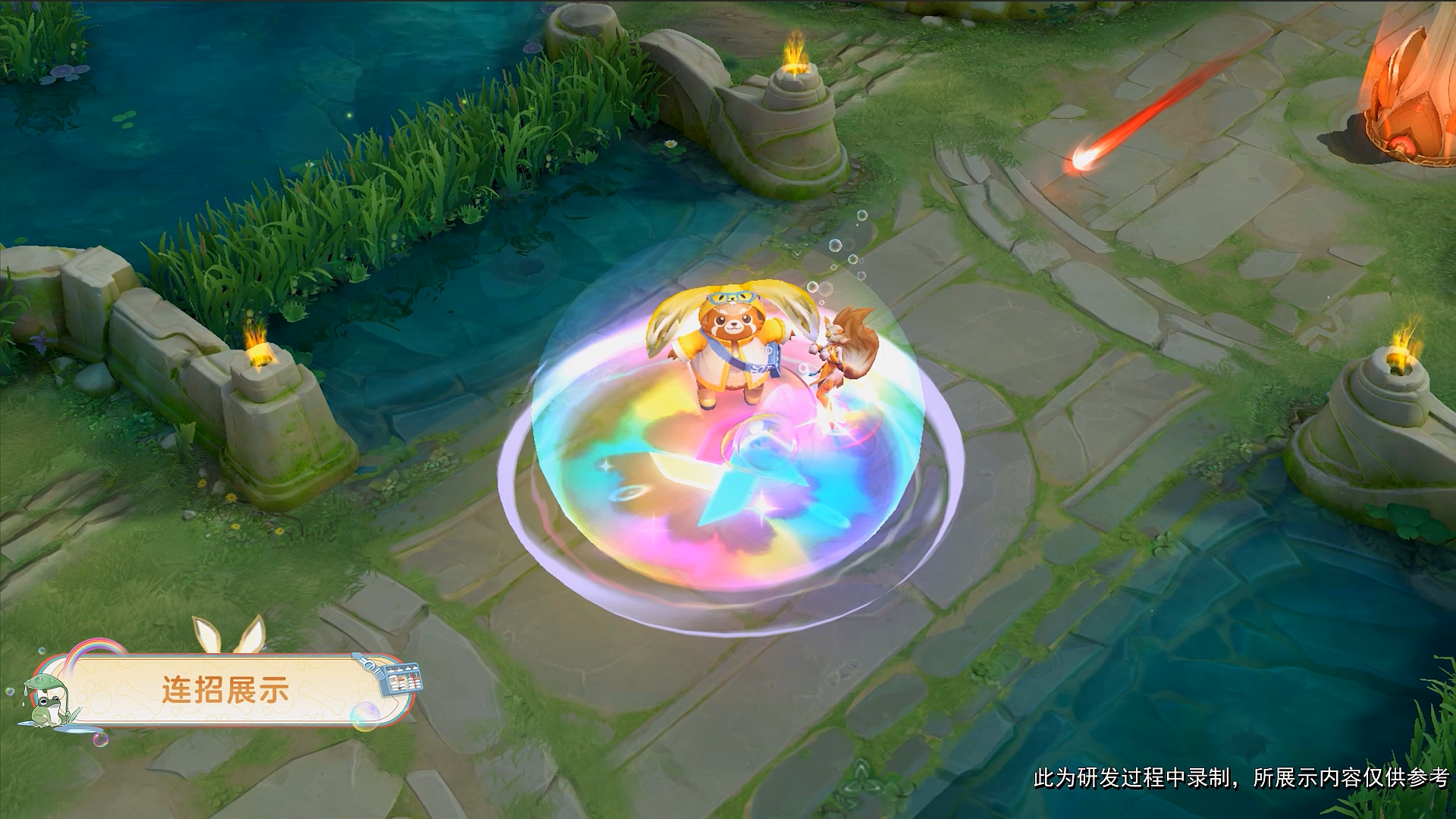 技能展示:特效中融入了风车、游戏机、吹泡泡等童年元素,搭配斑斓的彩虹色,更显梦幻和童趣。