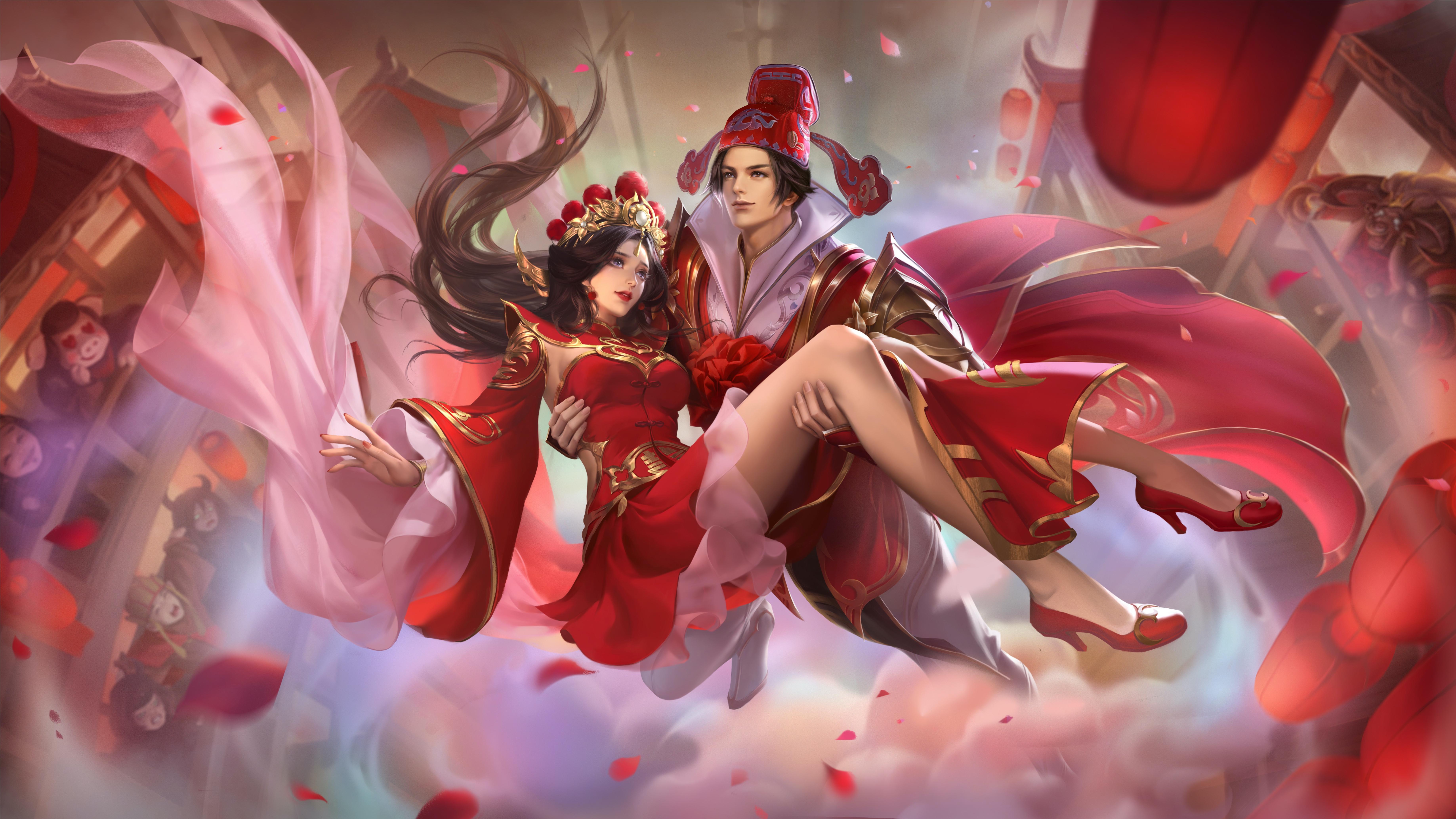 2016年2月14日,正值浪漫的情人节,王者推出了首对限定情侣皮肤,拥有白色飘逸长发的周瑜,手捧玫瑰花束的纯白花嫁,成为当年玩家追捧的皮肤。