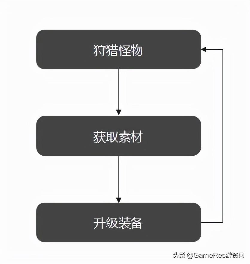 这个定义的漏洞在于它太抽象了,导致很多游戏都可以套用该定义。比如《怪物猎人·世界》。怪物猎人提供了一组副本,副本可以产出怪物素材,对素材的利用可以打造不同的装备,而装备则可以改善玩家刷副本的效率。