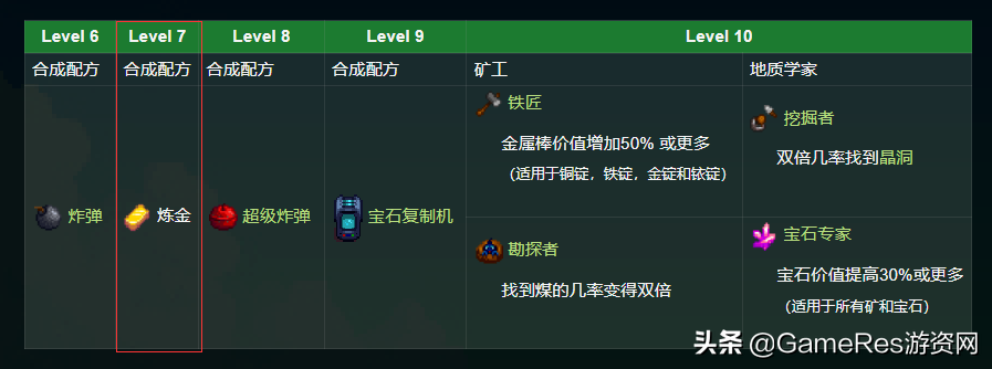 比如对于耕种来说,前5级可以解锁的道具如下图所示:
