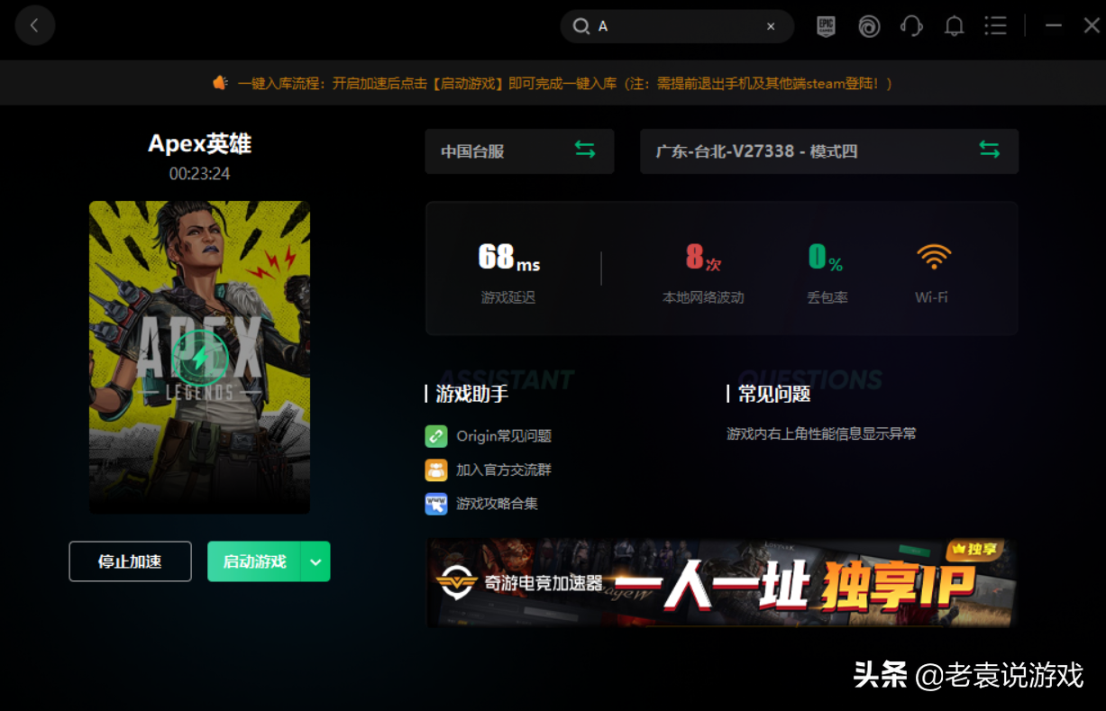 在体验游戏的时候,玩家们一定需要打开奇游加速工具,并且在中途中不要更换其它的加速工具,不然的话可能会被封号,并且奇游里面有独享IP的功能,可以有效减少被封几率。
