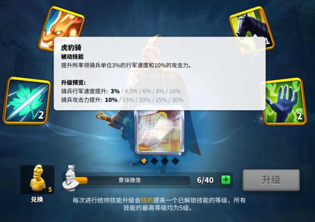 铁血铁甲军:觉醒技能是增强了三技能铁甲军让骑兵单位增加到30%的防御力,10秒后的脱战速度达到了50%。