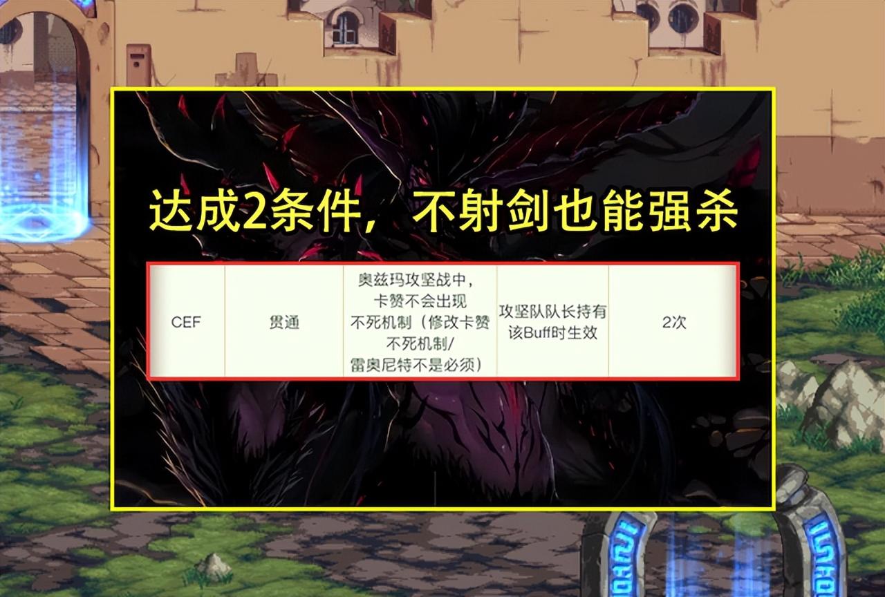 最后,在奥兹玛的卡赞中,不能“射箭”也能强杀卡赞了!不过需要2个条件达成才行,一是精灵宝戒手工坊宝石为“CEF”组合,二是攻坚队队长才行,对于有实力的大C,可以考虑不射箭强杀,不过考虑到卡赞无虚弱状态会到处乱窜,风险率非常高,个人建议团本配置低的玩家,还是射箭比较稳一些,技能如果打不中,伤害再高也是摆设,如果配置高,8人团通关效率更高。