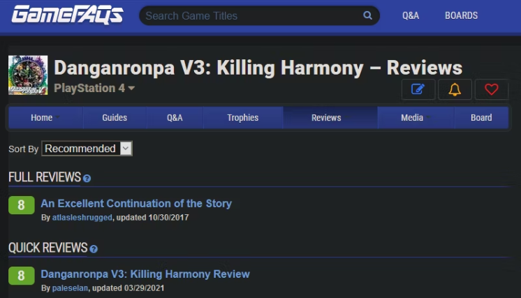 GameFAQs除了是游戏攻览的最佳场所之一,还是用户评论游戏的有用资源。搜索一款游戏,查看它的评论标签,看看其他人对它的看法。
