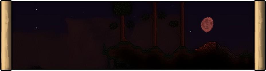 血月由屏幕左下角的讯息“血月正在升起...”所表示,月亮、天空、水、和雨在事件持续期间都会呈现为红色。