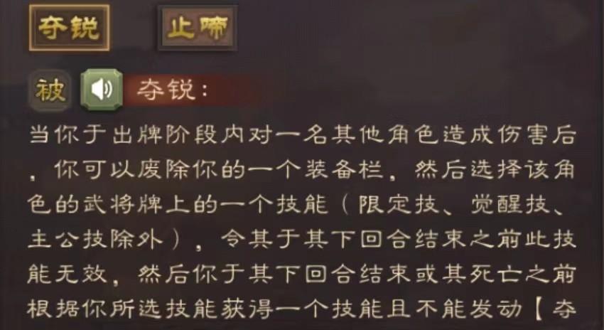 神张辽主要技能就是夺锐,简单来说就是抢别人技能自己用,因此这是一个遇强则强,遇弱则小白板的神将,由于本身是个摸牌白,而夺锐需要对敌方造成伤害才能抢技能,因此神张辽的强度很大程度上看运气,不过也比上面三个要好点。