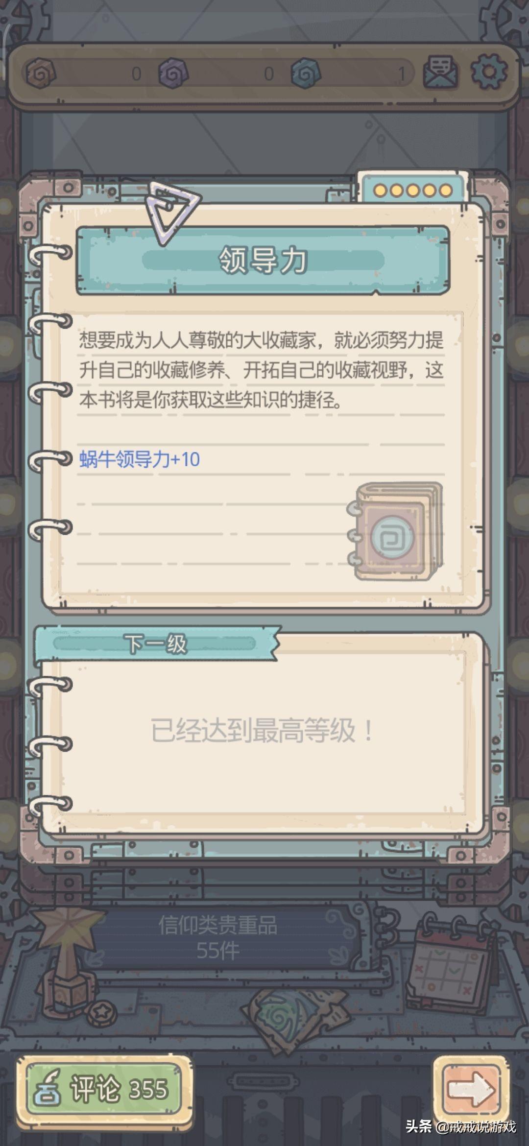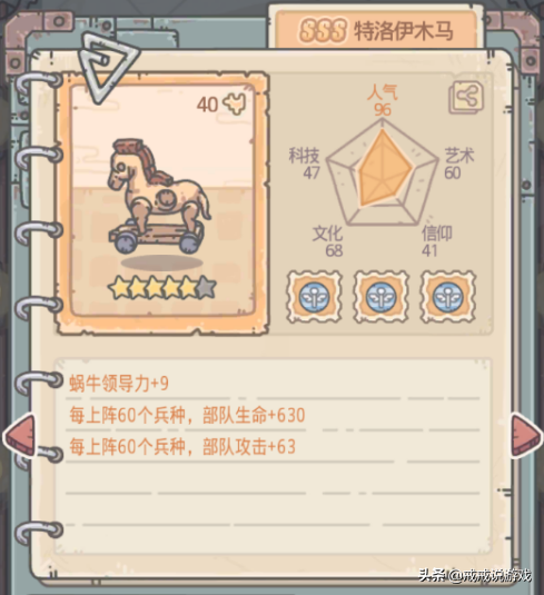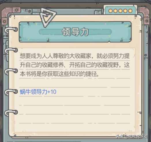 游戏中有一些贵重品是可以增加玩家的领导力的,比如特洛伊木马(满级+12点领导力)、亚历山大远征记(制霸天竺后+15点领导力)等是可以增加蜗牛领导力的,这些贵重品可以有目的性的收集一下。