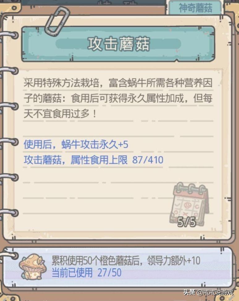 累计使用50个橙色蘑菇后,领导力额外增加10。吃橙蘑菇数累计达到20/50/120/250/500时,领导力都会增加10,吃够500共加50(目前上限500,后续应该还会开放)。所以有条件的前提下,优先吃橙色蘑菇也是很有必要的。