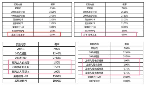 官方也很详细的公布了每一个宝箱奖励详情和中奖概率,吕布猎兽之王和嬴政-白昼王子抽中的概率是0.5%,诸葛亮星元每一个部件是1.0%-1.5%,龙御九霄每一个在0.75%-1.0%,这种概率还是可以大量去尝试的,只要次数多应该可以中。
