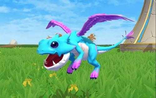 魔法灵龙通体亮蓝色,有双blingbling的大眼睛,瞳孔、双翅、尾尖的淡紫色让它看起来神秘又梦幻。