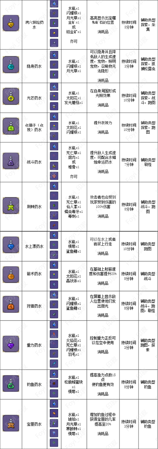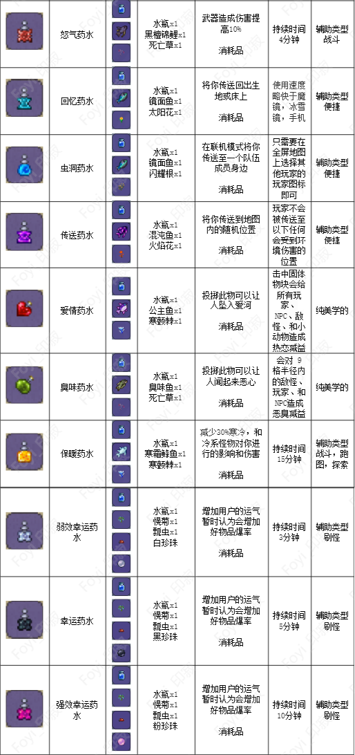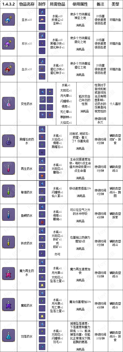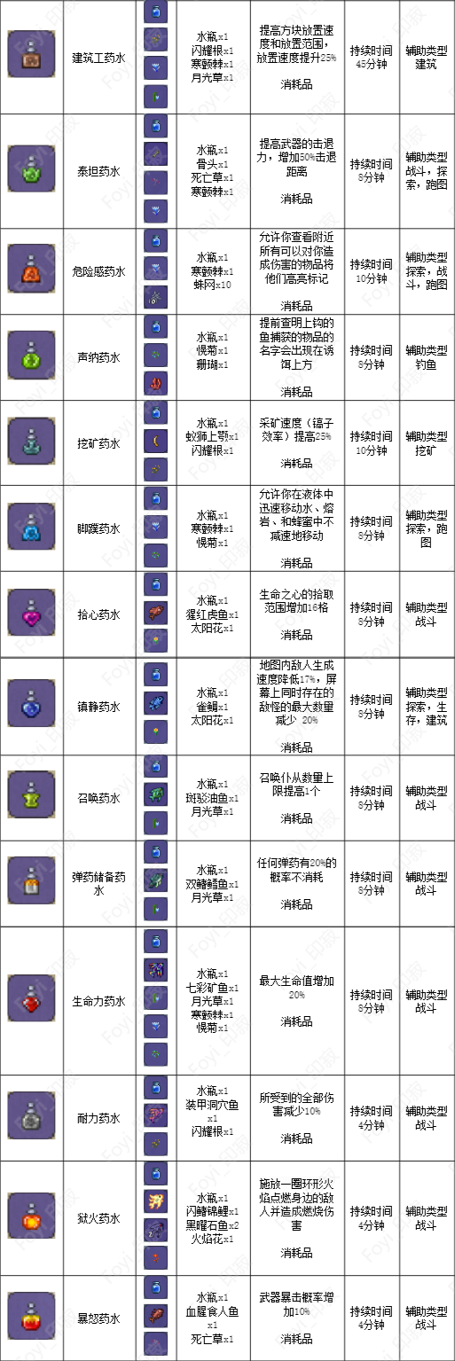 本篇文章我为大家整理了泰拉瑞亚V1.4.3.2版本所有的药水制作方法,直到最新版本V1.4.4.9暂无明显变化!