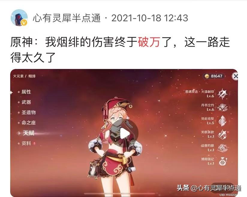 我记得自己第一个角色伤害破万的也是烟绯,那个时候,冒险等级45级,烟绯的角色等级80级,那时候入坑原神两个半月的时间,伤害终于破万!或许在你们眼里看来,我确实是个很菜很菜的玩家,评论区里,有人骂我刮痧丢人,有人喜欢看我刮痧,更有人劝我退游。但这些始终没有动摇自己继续玩烟绯的态度!