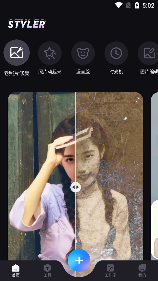 另外这个软件还有其他的功能,比如老照片修复、漫画脸、一键抠图、照片动漫等等。以前父母辈拍摄的一些图片距离现在的时间很久了,照片开始变得有些模糊不清,我们就可以使用这款软件将模糊不清的照片进行智能修复。如果大家感兴趣的话,可以自行下载体验呀,里面还会有很多不一样的图片效果哦。