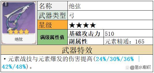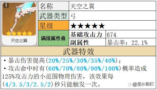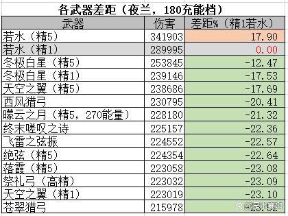 五星武器输出型武器里,其他武器都和若水有着很大的差距。飞雷之弦振只能作为白板武器;冬极白星被动的攻击百分比加成没啥作用;天空之翼的话,白值高副属性低,所以对夜兰的加成也不高。毫无疑问,它们同样面临着充能的问题。在确保充能达标之后,伤害方面可能就比不过部分充能武器了。