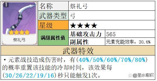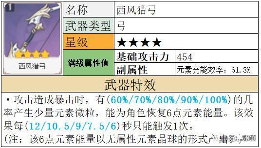 西风猎弓和祭礼弓各有优势:西风可以给全队回能;祭礼则是重置E技能CD,能让0命夜兰体验一下1命的感觉,进一步降低充能要求。不过西风弓是低白值高副属性,副属性有着高达61.3%的元素充能效率;祭礼弓则是相反。综合来说,西风弓的优先级是要高于低精炼祭礼弓的,和高精祭礼弓地位差不多。