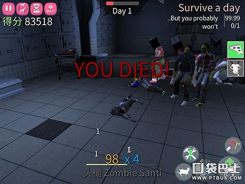 在本作提供的生存模式中,玩家的目标就是不断的活下去,虽然游戏还是没有告诉我们除了获得更高的分数探索更多的内容之外到底有没有一个通关目标。玩家需要不断的吃东西,否则会饿死,僵尸的攻击性也比原来弱不禁风的人类强了很多,同时还得搜集各种资源合成6种武器来消灭更强大的僵尸。