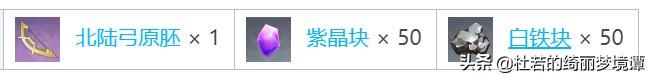 1个北陆弓原胚、50块紫晶块、50块白铁块