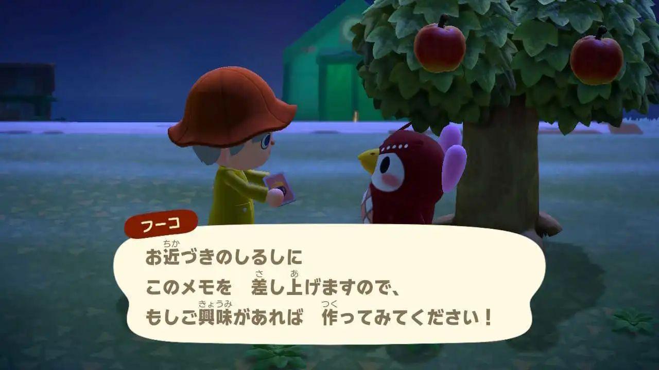 在会发生流星的日子里,傅达的妹妹傅珂有几率来到玩家的岛上,与其对话就会获得一个随机的流星系列道具手册。