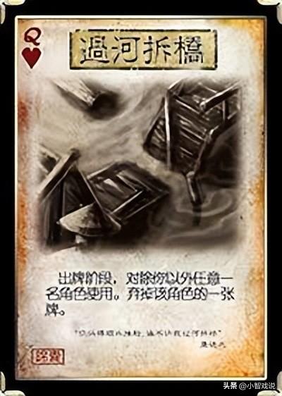 其实过河拆桥排在这里还是没什么大错的,很多时候过河拆桥都是去拆掉队友的乐不思蜀、兵粮寸断以及闪电等情况时会被无懈,而拆除对手则是加减马和武将比较容易被无懈,但是其他情况都会因为排名第三的锦囊,所以让过河拆桥被无懈可击的次数减少。