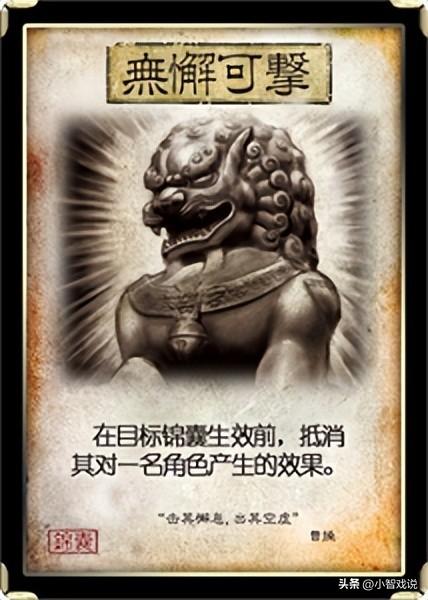 那么以上都是小智我自己个人对无懈可击的浅显看法,仅代表我的个人拙见。小伙伴们觉得无懈可击去无懈哪张锦囊牌最爽呢?欢迎到评论区说出你的看法!我是小智戏说,爱生活,更爱你们!