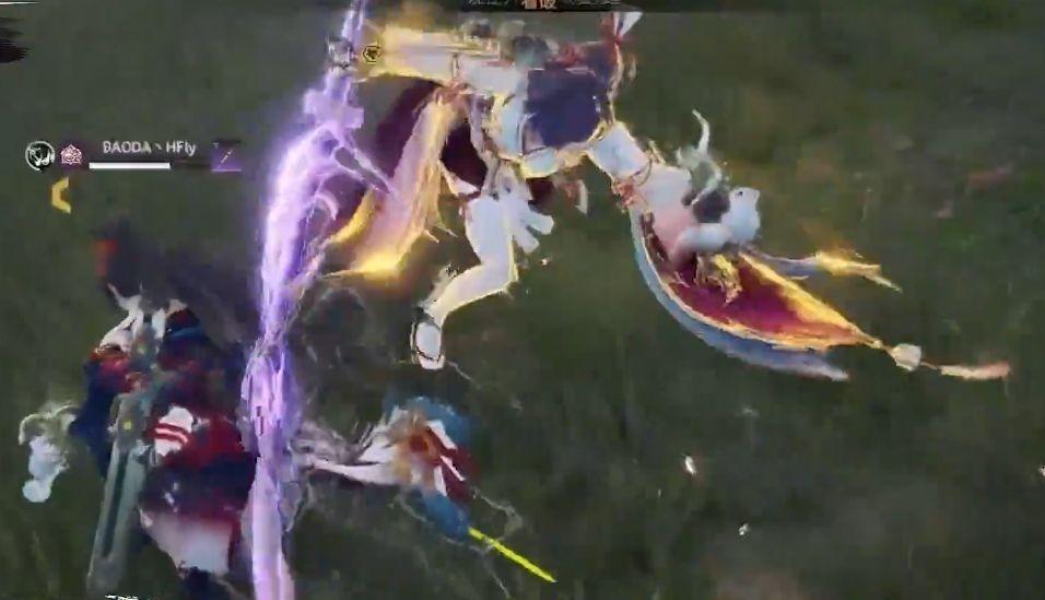 不过,妖刀姬有优势也有弱势,开大后一套技能全空的话就相当于白给了。在第一双周第四天单排的第二局比赛中,BAODA丶HFly就上演了一波神级身法。面对开大的妖刀姬,一定要抓准对手放技能的空档去进行一个灵活的闪避。BAODA丶HFly的反应速度真的是看呆众人,各种无敌帧规避伤害,愣是在不祥之刃中全身而退了。