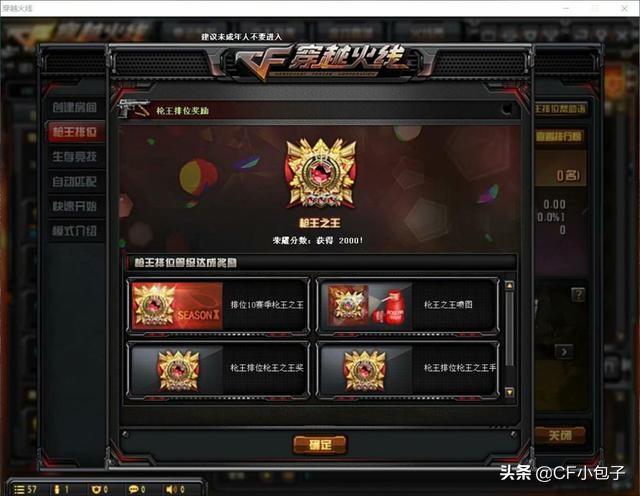 今天和大家聊下穿越火线新赛季已经拉开战火,很多玩家们为了能够登上大区顶级段位的宝座,努力冲分。枪王之王成为了每个玩家心中的目标,但上枪王之王真的那么简单吗?在很多非CF玩家看来,CF枪王已经烂大街了,说起CF枪王那都是分分钟的事情,但枪王之王可不是那么容易,可能很多人认为分分钟上的事,事实是一辈子都未必能上的去。