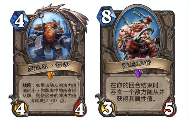 我们的制胜手段就是憎恶军官,快攻卡组中期开始容易抽1打1,即使对面打出了巨型随从,我们也能用憎恶军官管将其吃掉,彻底断了快攻站场斩杀的幻想。再加上对手解场手段缺乏,憎恶军官是完全处理不掉的。