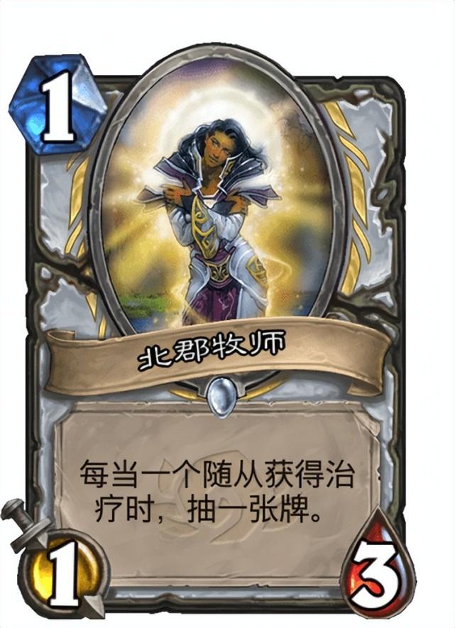其次最有意思的是北郡牧师从2022核心系列中回归了,作为一张进入了荣誉室的卡,强度毋庸置疑。虽然放在这套卡组中不是很适用,但是放在BUFF牧中绝对香。