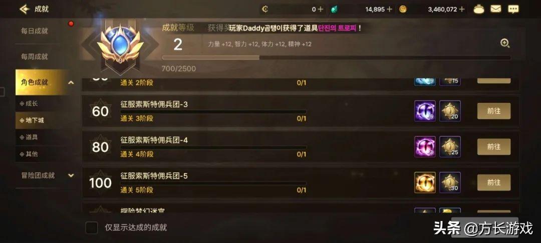 3、成就奖励: