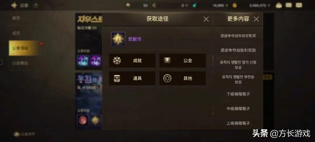 还有公会里的捐赠可以获得金币。