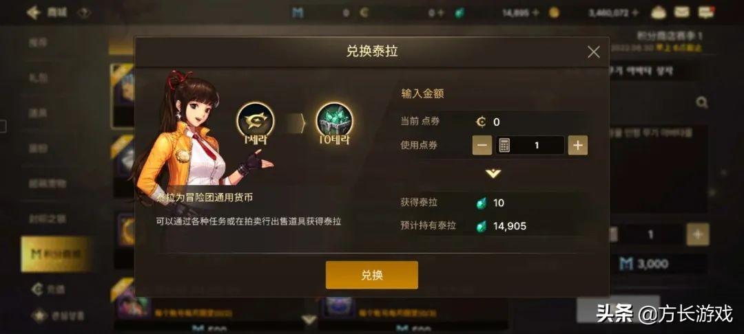 最普遍的一种就是使用点券兑换,点券兑换泰拉的话是1:10的比例。