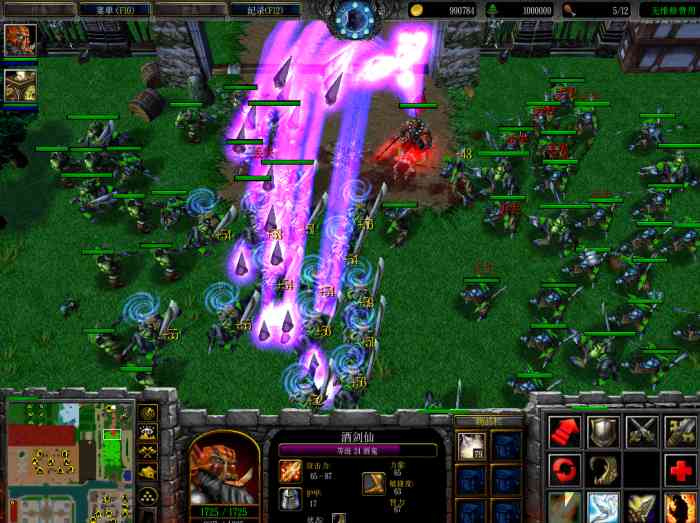 《仙剑》系列的地图其实在《魔兽争霸3》中有很多,从早期的“完美版”、“镇妖篇”到后面的“三千年之缘”等,细数过来至少都出了20多张。而且模组也从直接套用《魔兽》角色转变成贴合《仙剑》原作的独立人设,甚至后面的《仙剑》地图还加入了翅膀。而回味起来,这么多《仙剑》地图中整体素质最高的可能还要属“2.5正式版”那张了。这是非常标准的单人RPG地图,全程通关大概需要1个下午的时间。它是以剧情+任务的形式推动整个游戏进程,从余杭县发现黑苗族到“杀鬼王”、“捉飞贼”、“守扬州”、“打凤凰”、“见巫后”、“诛拜月”,所有的出场角色和故事基本上还原了电视剧《仙剑奇侠传1》。并且最难得的是,这张地图中间穿插了大量的剧情动画,虽然实现方式很简单(拉低视角),但依然能够感受到浓浓的RPG玩法精髓。另外,虽然画面不算特别华丽,但贵在细节捕捉的足够真实,比如进入墓地杀鬼王僵尸的时候,角色还会被周围的毒雾束缚住,直到出来后短时间依然会有“尸毒未散”的效果。而且从进入游戏开始,嘹亮的BGM绝对是所有《魔兽》RPG地图中都少见的。毫无疑问,这张《仙剑》地图丝毫不会逊色于同名原作。