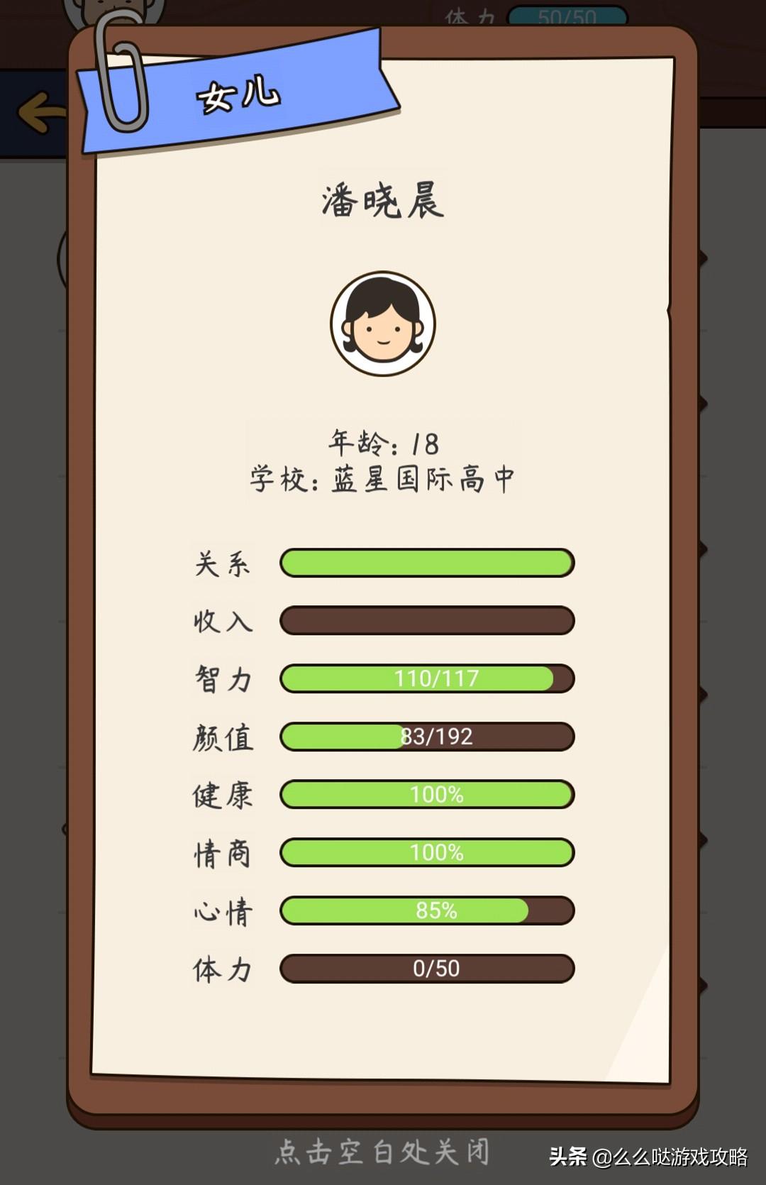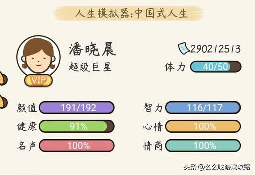 要点:达成初值满值或者尽量满值,首先考虑金钱提升较少的属性:情商、智力,其次选择颜值、名声,各种活动过程中要注意健康值以及自然提升的属性。
