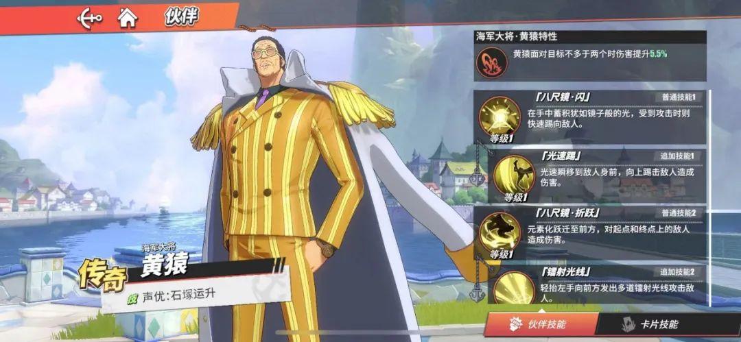 一技能:八尺镜.闪。在手中蓄积如镜子般的光,受到攻击时则快速踢向敌人,击中对方触发二段技能光速瞬移到敌人身前,向上踢击敌人造成大量伤害。