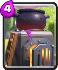 烈焰熔炉:这里主要是辅助消耗为主,在我们双倍费用的活动中,由于国王塔等级是9级,那么7级的烈焰熔炉是敌方的公主塔无法解除的,需要被攻击一次,通过这样的不断消耗给与对手心里上的压力,并且在对抗一些人海卡时也是非常的好用,后期无论是消耗性还是防守性都很强,这里可以配合皇家巨人做消耗。