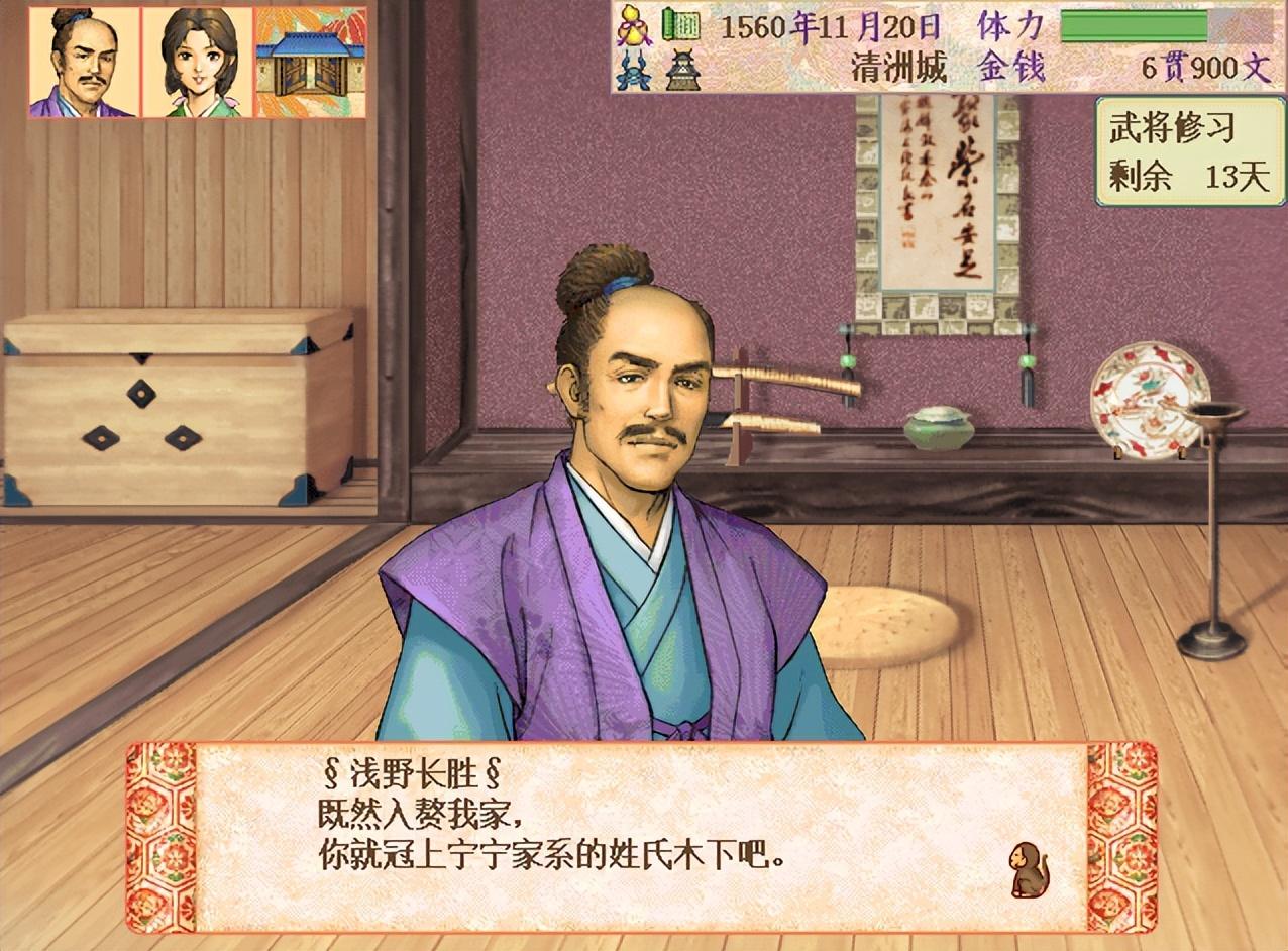 也许会有玩家晕,图上这位宁宁的父亲不是叫浅野长胜吗,咋入赘之后反而叫“木下”呢?因为宁宁是养女。而他儿子叫浅野长政,日后三中老之一。