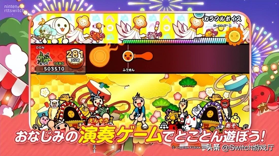 《太鼓之达人咚咚雷音祭》首发版将会收录来自人气乐队ヨルシカ的《だから僕は音楽を辞めた》、出道便上红白的yoasobi乐队代表作《夜に駆ける》,经典游戏配乐《塞尔达传说主旋律》以及人气漫画鬼灭之刃OP《红莲华》等当下人气动漫游戏流行名曲共计76首,敬请期待。游戏有联机对战和本地派对游戏等功能,另外还将推出"太鼓音乐通行证"DLC,价格为550 日元(¥27)/30 天、1320日元(¥65)/90天,每月将更新曲库,订阅后可以畅玩额外的500多首曲目。另外官方还准备了7天免费使用券太鼓 Music Pass,玩家可以免费体验一周,不过1个Nintendo帐号仅可下载1次7天免费使用券。