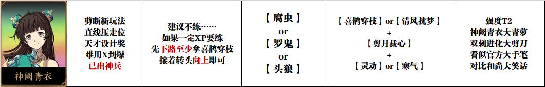 首先还是照例来讲讲神阙青衣的玩法吧......一说到这维一居然形似如鲠在喉、欲言又止,因为针对神阙青衣这位新角色而言,维一真的是找不出特别合适的词语来形容她,对比过去的小青萝和这位大青萝,说的不好听一点,小青萝的作用可能都要更大一些,好歹人家还能在PVP玩法中当个吉祥物嘛,但这个大青萝能干啥?啥啥啥不行,连当个吉祥物都没小琴萝可爱,哎哎哎......