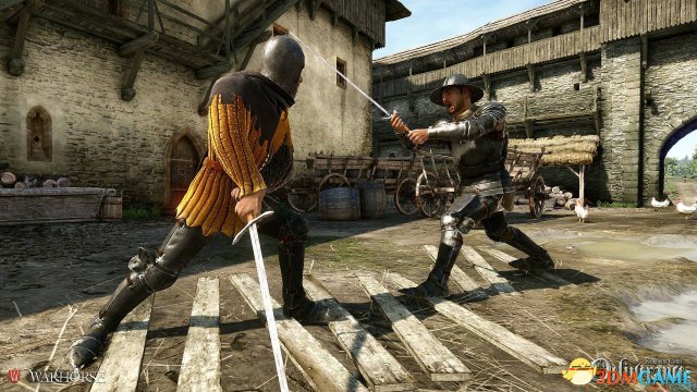 干死他以后把他身上值钱的那几件装备笑纳,然后往下跑找到一匹马骑上去去撞身后的那三个在门外想要强X特丽莎的流氓库曼人,撞一下之后立马骑着马跑路就好了。