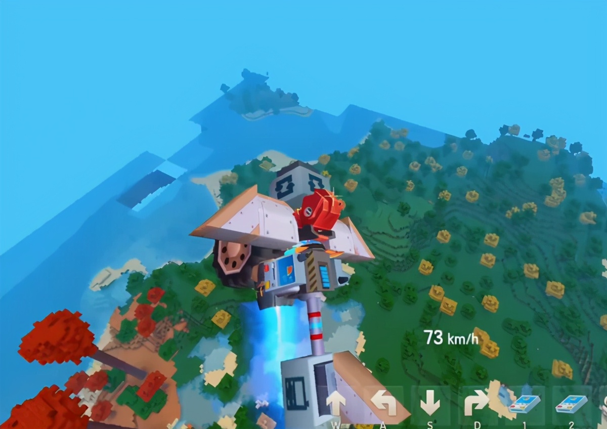 要是坐一架飞机的话,就得考虑更多限制因素。机身做得太大,可能就飞不起来。一种实用的小飞机制作教程是,玩家可以用转轴方块控制机翼方块旋转,用转轴方块控制尾翼的导向,这样就能做成一架简易版的飞机。