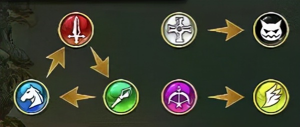 说到《梦幻模拟战2》的战略性,就不得不提到各种佣兵及各位指挥官自带的兵种属性,兵种间的克制关系是:三个普通兵种——步兵>枪兵>骑兵互相克制形成闭环、远程克制飞行、神圣克制魔族。