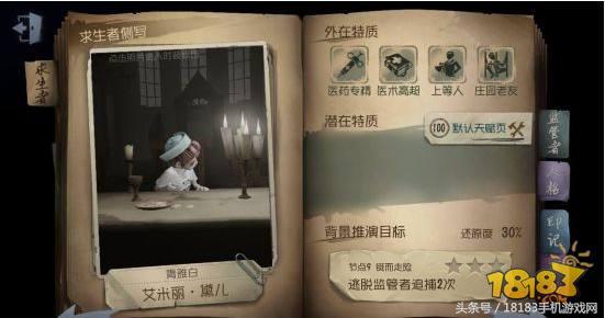 医生艾米丽是第五人格新手的基础角色之一。也是唯一一个初始就有自己治疗自己能力的角色。
