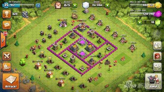 《部落冲突》护资源,顾名思义资源就是重点保护对象,直接把资源先圈起来嘛,然后加农炮,箭塔,法师塔,环绕四周,打敌人,也把武器都圈起来,减少损毁,最后不重要的东东我就环绕一圈摆,减少敌人的放兵距离,让敌人减少对武器的攻击。就这么简单。
