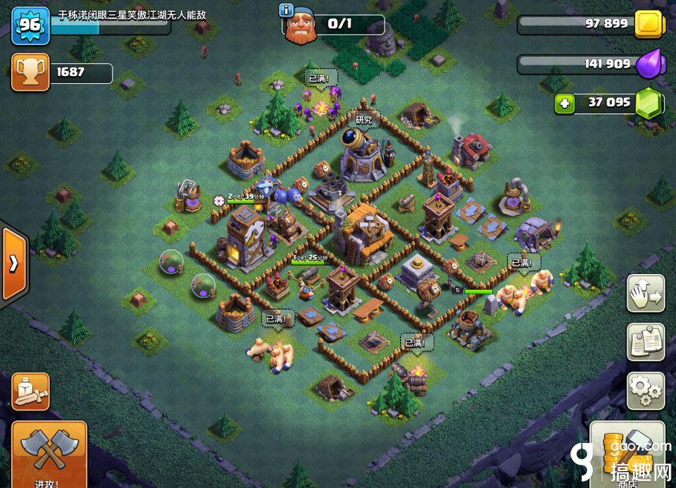 我这个阵有几个建筑没升级、防御不满级王的、或者选错进攻方向的小伙伴、坑的很明显。