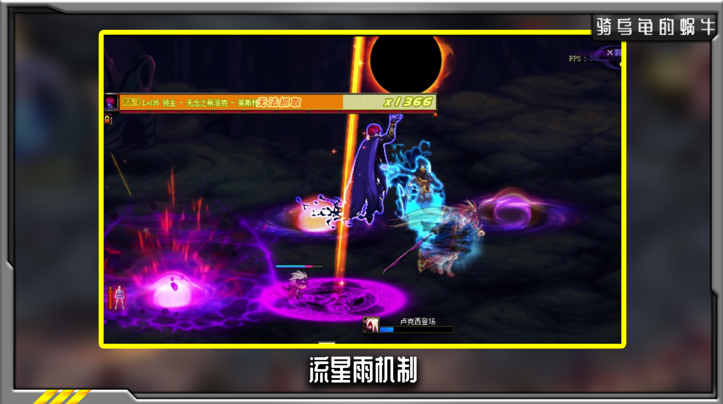 流星雨机制发动时领主会遮挡太阳,同时从空中坠落跟踪玩家的流星雨,流星砸向地面的时候会出现一个黑洞漩涡,会对玩家造成一定的吸附效果,如果不快速的位移很容易被持续打击而造成大量的伤害。