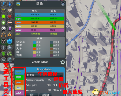 当一条新路线被创建时,默认的车辆数量。初始值是1。(预算会影响自动控制,但关闭自动控制就不会受预算影响了,还有增加运力不会增加预算。)