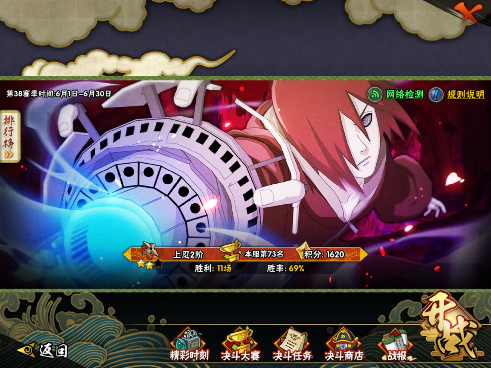 来到下忍后,就稍微有点玩法了,如果说见习是熟悉火影忍者这个游戏玩法和基本的技能机制的话,下忍就对走位,技能施放,连招,及通灵密卷的搭配有了要求,是一个从熟悉学习,到有一定熟练度的过程。这个段位要求对所使用的忍者有进一步的了解和掌握,对技能的释放时机有一定的判断,对普攻的衔接有一定的熟练度和意识。