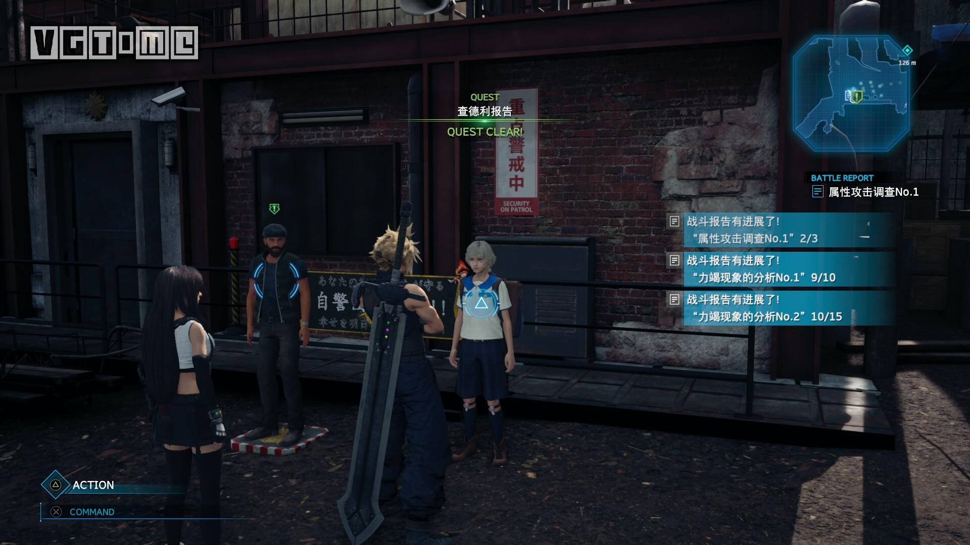 从 NPC 那里拿到支线任务清单之后,旁边的查德利就会和克劳德对话。用查德利给的「洞察」魔晶石在战斗中洞察两个敌人,再和查德利对话即可完成任务,并开启「战斗报告」选项。