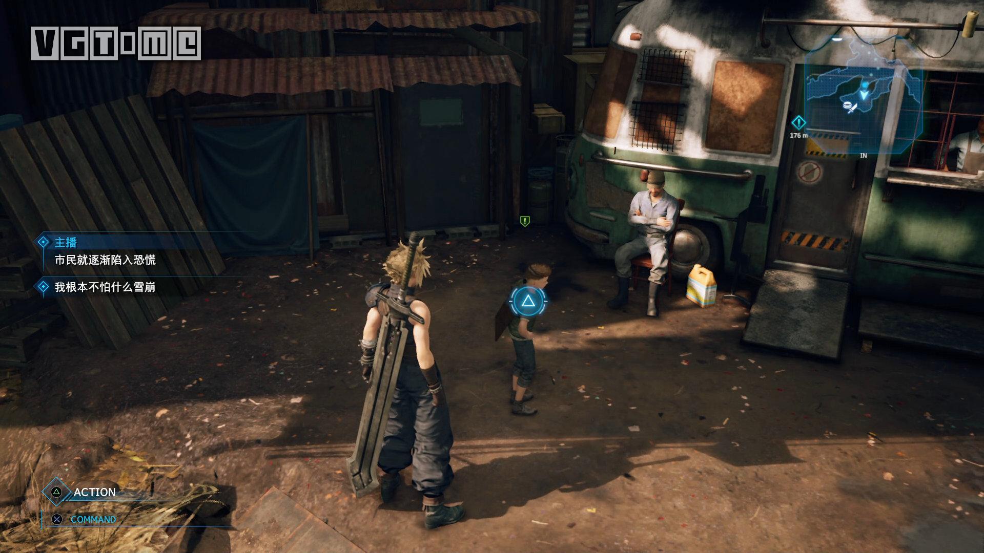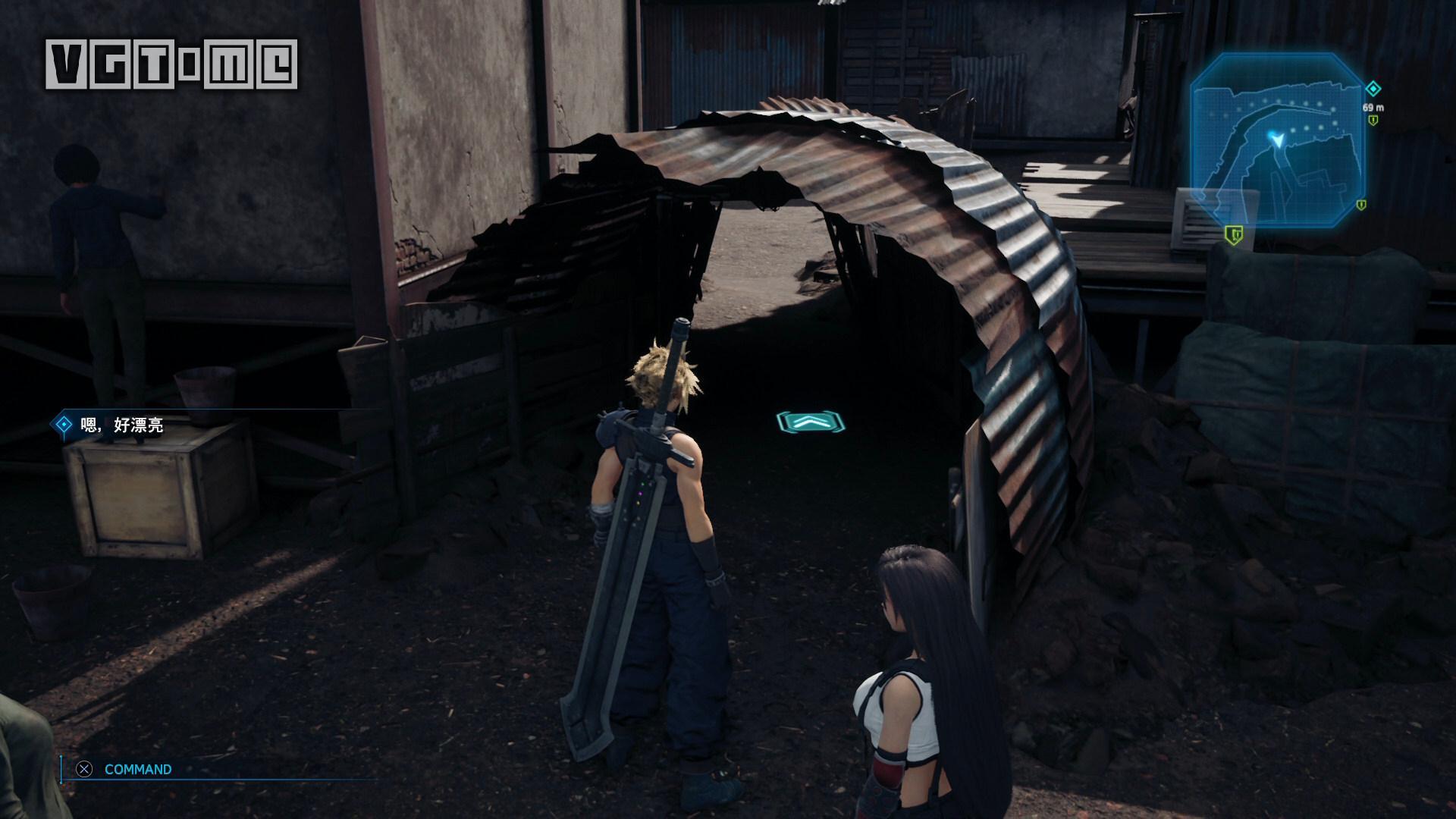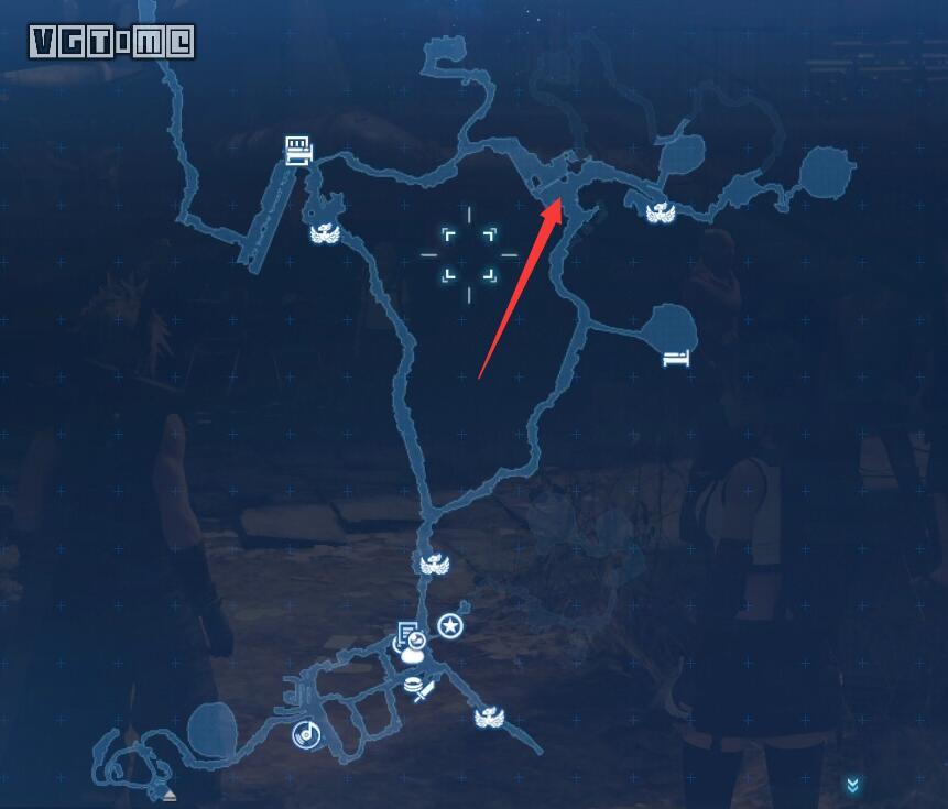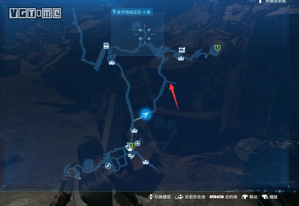 和男性 NPC 对话,前往废弃物指定区的小巷与神罗兵器战斗,共有五架穿透狂眼(两次战斗),区域如下图:
